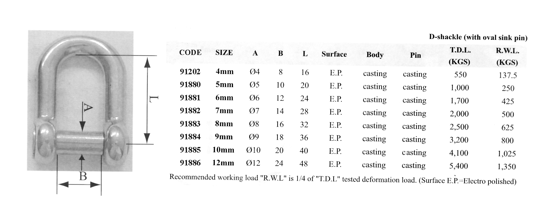 96966 D shackle w/ oval sink pin, AISI 316, Diam. 9mm